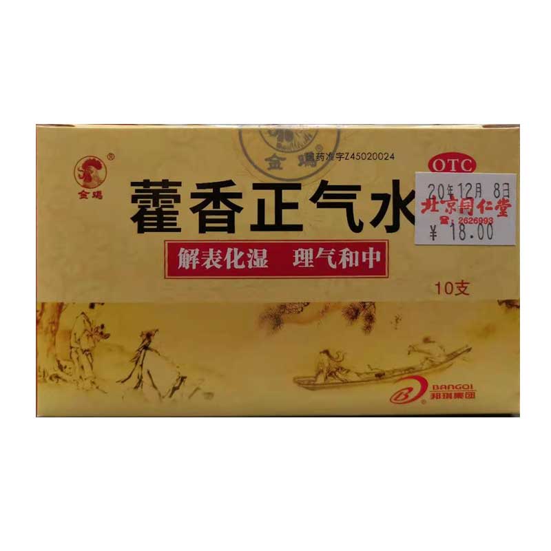 金雞藿香正氣水10ml*10支/盒泄瀉嘔吐頭痛昏重外感風(fēng)寒感冒